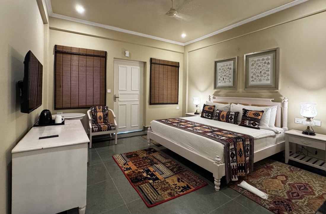 The Pavilion Rooms at Raj Niwas Palace, Dholpur offer a cosy 225 sq. ft. retreat where heritage charm meets modern comfort. Fully air‑conditioned, they feature cascading windows, a plush king‑size bed, and elegant décor that creates a calm, indulgent atmosphere. Thoughtful amenities and soothing garden views make these rooms perfect for guests seeking quiet luxury in an intimate setting.