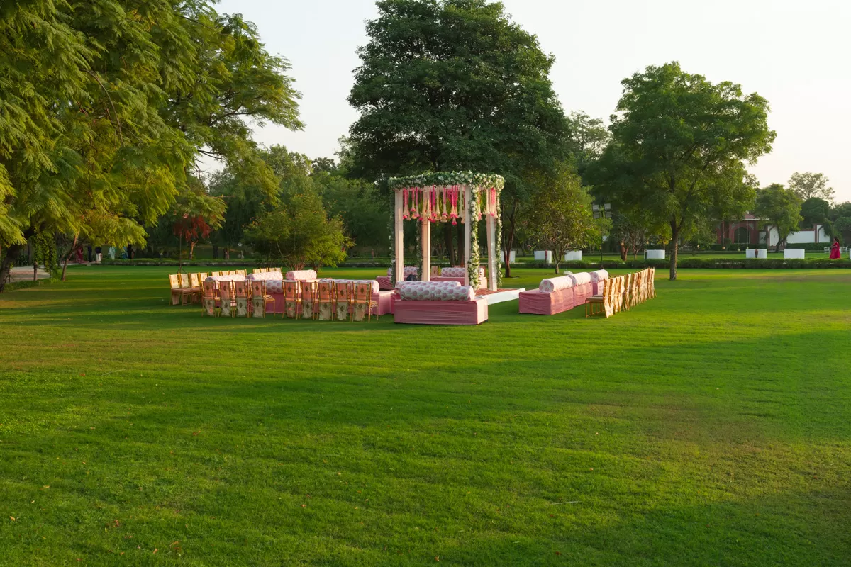 The enthralling idea of exchanging vows with your soul-mate in a regal ambience becomes charming when the venue is the Raj Niwas Palace. It's an authentic trove of antiques, curios, and treasures from days gone by, swearing to make you feel the royalty on your wedding day.